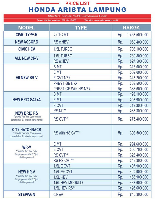 HONDA ARISTA DEALER TERBESAR DAN TERLENGKAP SE-LAMPUNG*
